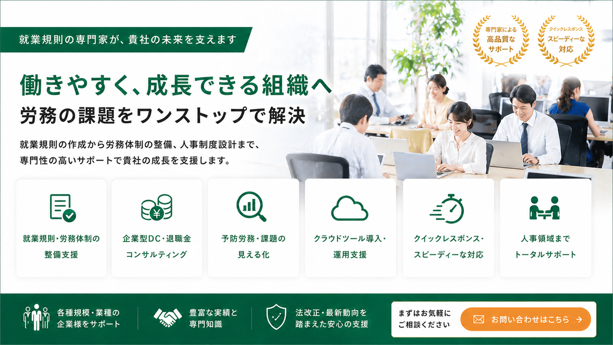 就業規則見直しを検討する企業様へのおすすめのサービスです。