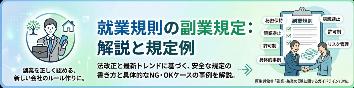 この記事では、就業規則に副業・兼業の規定を設ける際の3つのパターンと具体的な条文記載例、そして中小企業がとりわけ注意すべきポイントを解説します。